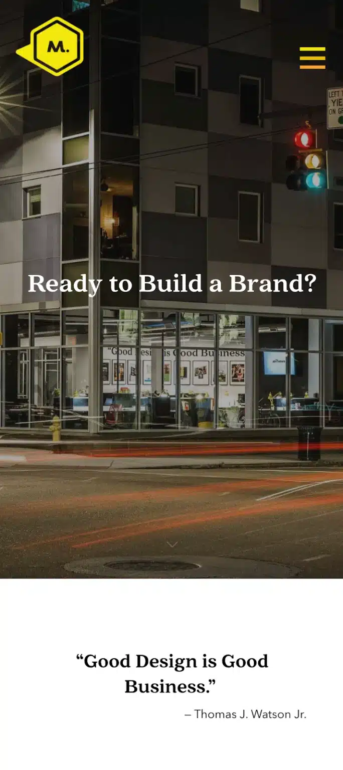 Here’s an example from Maycreate, in which the menu collapses into an easy-to-see hamburger icon on mobile, and the agency’s key message remains clear.