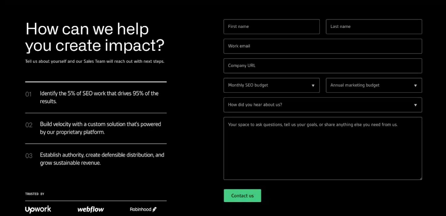 Here’s a great example of a contact form from Graphite, which captures extra information about the lead that can be helpful when kickstarting the conversation.