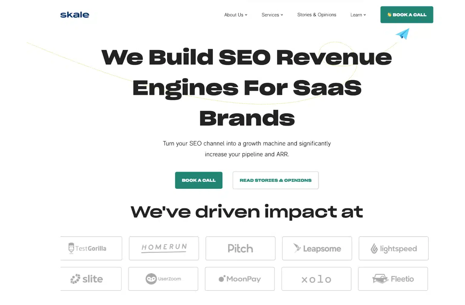 If you want to make money with AI, consider using an AI A/B tester to try different CTAs. Whatever CTA you choose, it should direct visitors to take the next step toward becoming a paying customers. The simple “book a call” CTA on Skale’s website is made more impactful with the use of a waving hand emoji, so don’t hesitate to incorporate them if they make sense for your brand.