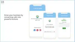 Post-call – After the call ends, we present a call-to-action screen, which motivates callers to take various actions – join the mailing list, write reviews, access social pages, answer a survey and more.