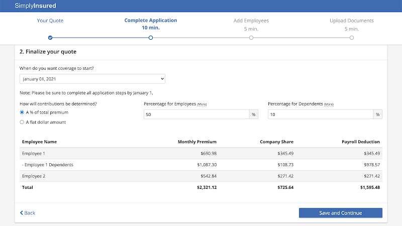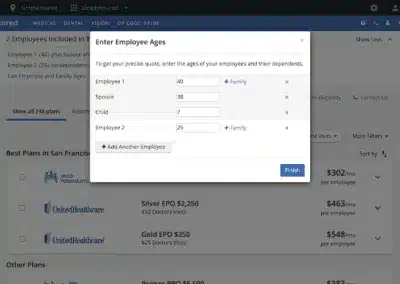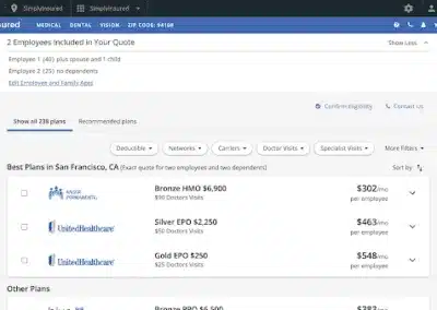 SimplyInsured is an online platform that helps small businesses compare and purchase employee medical, dental, and vision insurance plans. Business owners can compare plans side by side to find the one that best fits their business and budget. Typically, users save $486 per employee per year by comparison shopping.